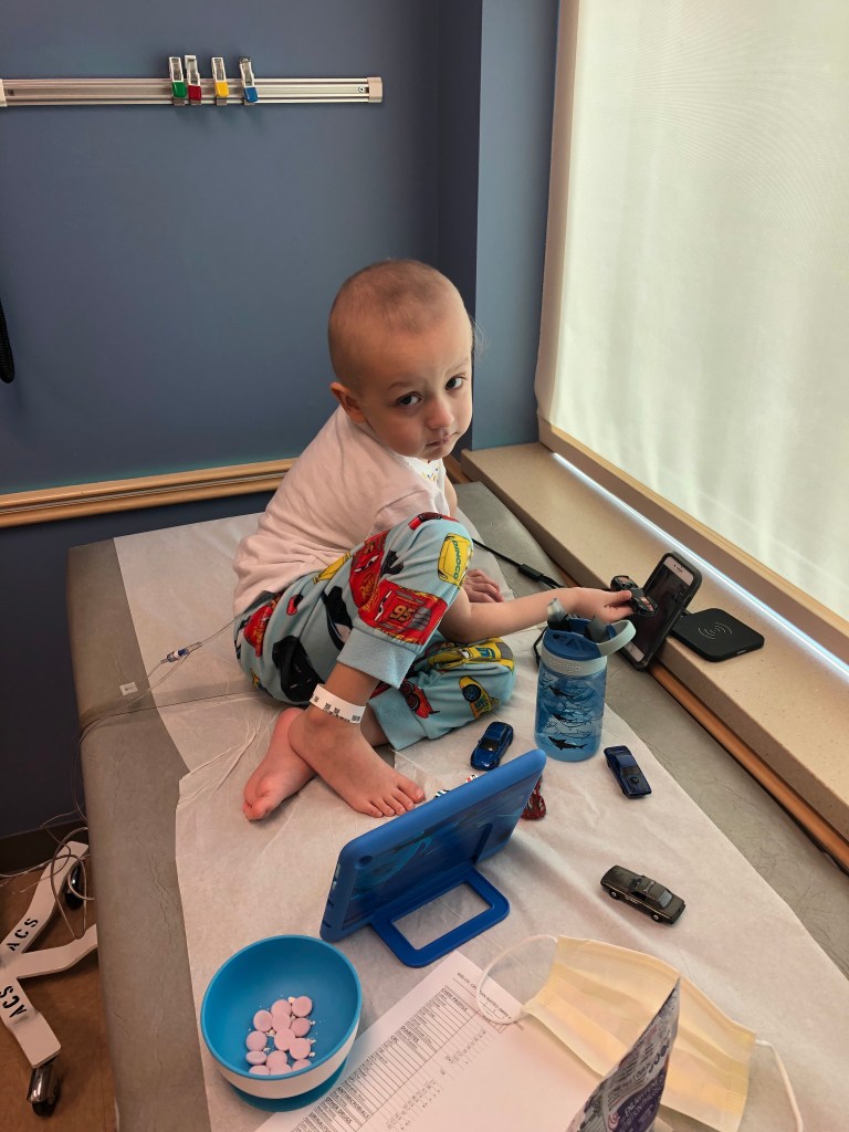 As Thursday rolled around we approached the “make or break” tests for us to go home on time vs needing to stay longer. The determining factor here is the amount of chemo still in Cristian’s body and if the levels are low enough to be safe. The first test did not come back with good news, he was barely above the level needed. This resulted in our stay being extended until his levels were even lower than the normal release threshold. We continued to give fluids and medicine to help get the chemo out ASAP. The longer the chemo is in his system, the greater the chances are that he will get mouth sores. These higher than acceptable levels would continue for a few more days…